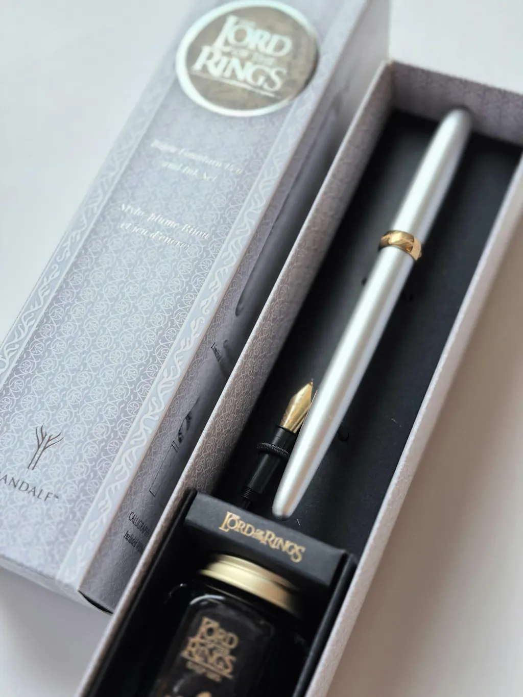 • TWO gold-plated nibs: standard 0.55mm writing nib PLUS Tengwar Calligraphy nib.