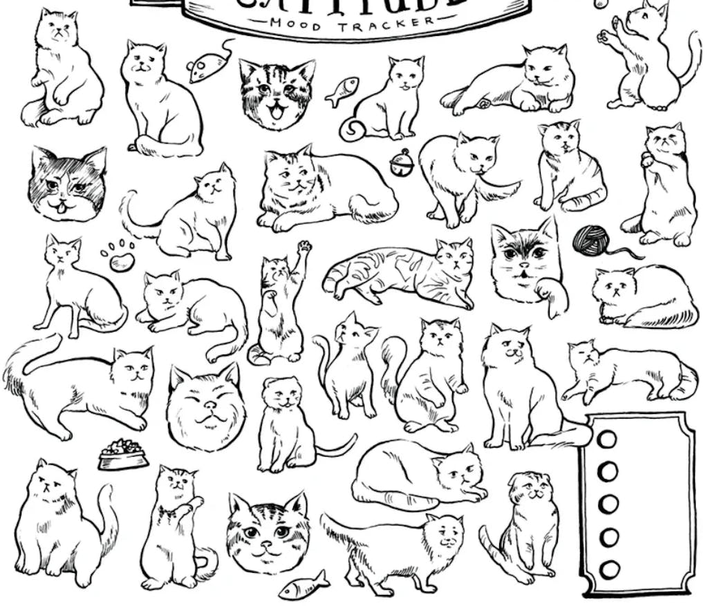 Catitude Mood Tracker - Colouring Sheet