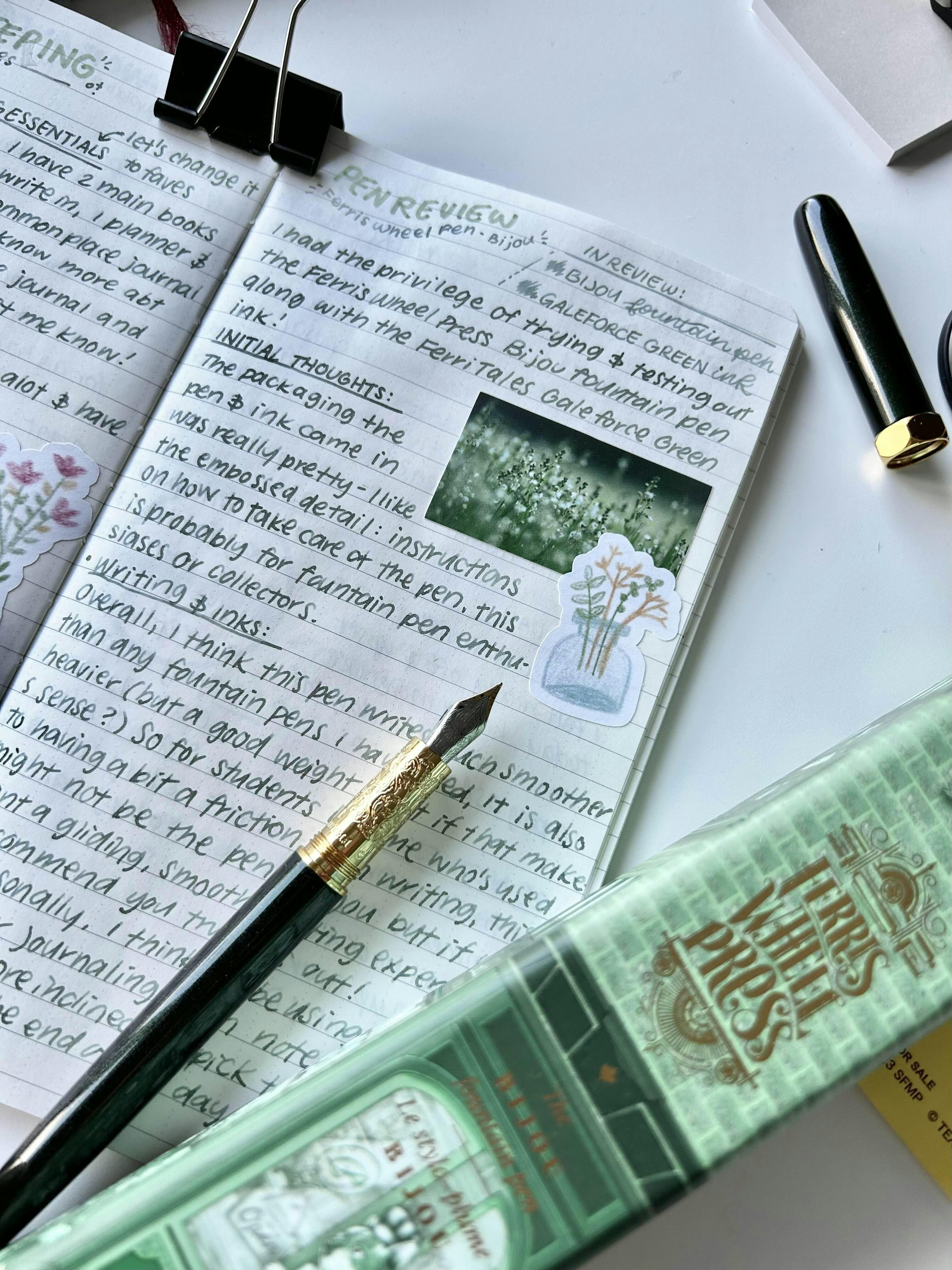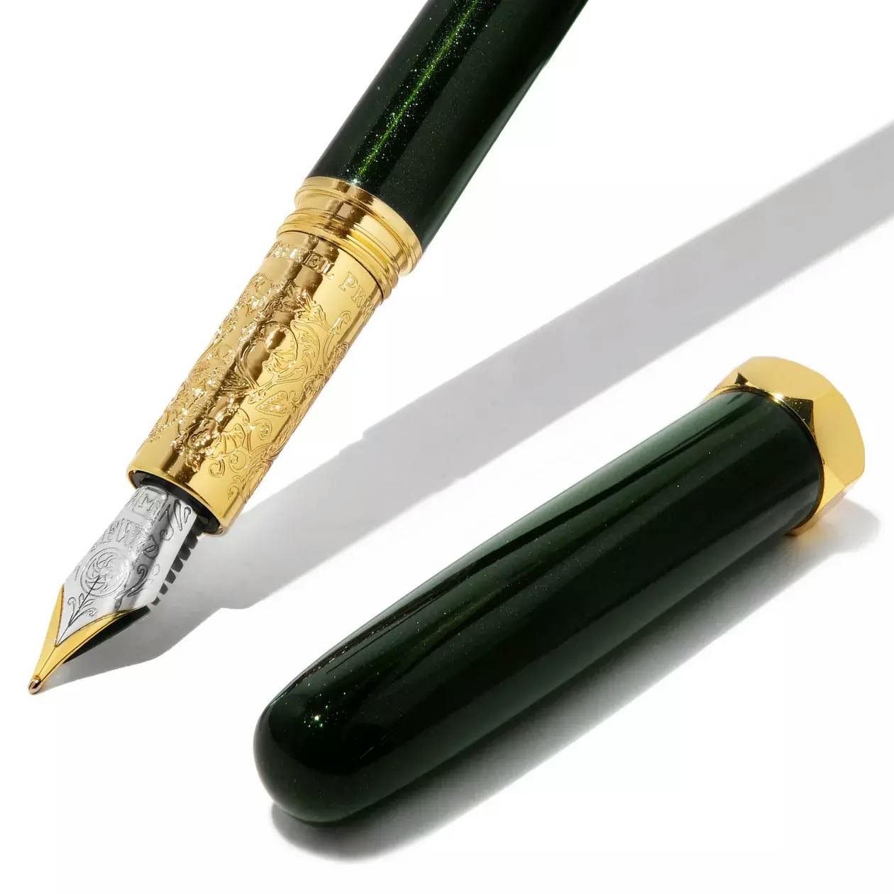 - Nib: Two-Tone Stainless Steel #5 in Fine/Medium, removable feeder